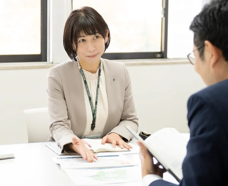 私は入行してからずっと営業店で融資業務を担当してきました。本部への異動が決まったときは、新しい業務に取り組めると期待を膨らませていましたが、いざ始まってみると仕事内容がまったく違い、まるで転職したような気分。社会人1年生として、一から勉強するつもりで法人営業部の仕事をスタートしました。